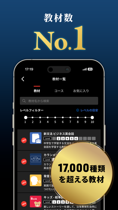 | レベル別の教材 | 難易度に応じてLv1~10までレベル分け |