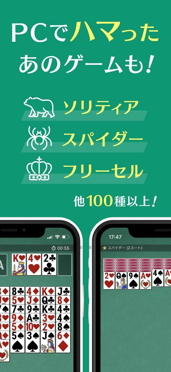 - フリーセルやゴルフなど、珍しいゲームも含め100種類以上を収録