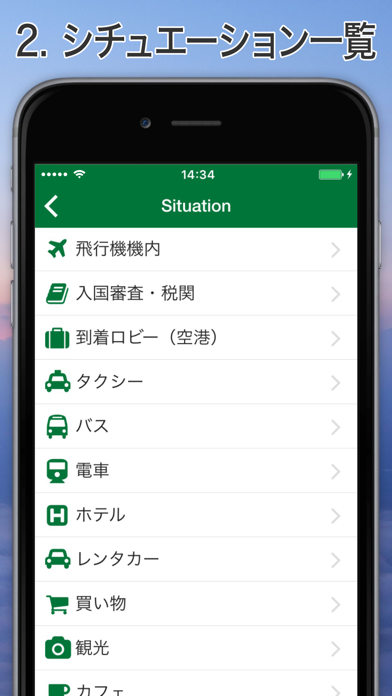 約200個のイタリア語フレーズをシチュエーションごとに整理。飛行機やホテル、買い物など、旅行中に遭遇するさまざまな場面に対応したフレーズが収録されています。初めての海外旅行者やイタリア語初心者でも、具体的な状況に応じたフレーズを瞬時に見つけられます。