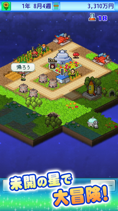 人類が宇宙に進出する時代になって数世紀。『アストロ探検隊』は、そんな近未来の世界が舞台です。未知の惑星を切り開いて、宇宙一の人気惑星へと改造していく開拓シミュレーションになります。
