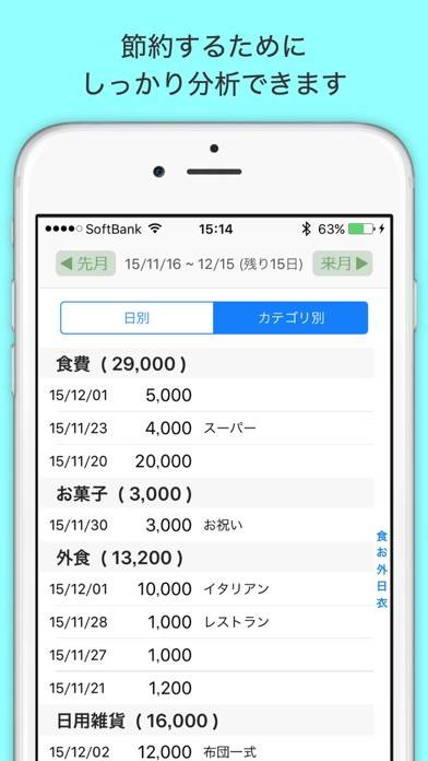 - 食費や家賃などカテゴリごとに支出を管理。細かな管理で無駄遣いを防止