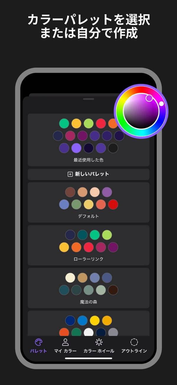 アプリでも色んなパレットがあって十分に塗り絵が楽しめます(^^)