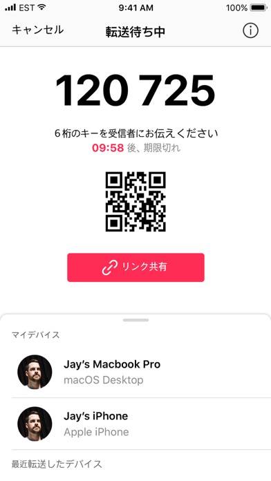 受信側も同じアプリを起動させる必要がありますが傍に居る人ならQRコードを読み取るか6桁の数字を入力するだけ。