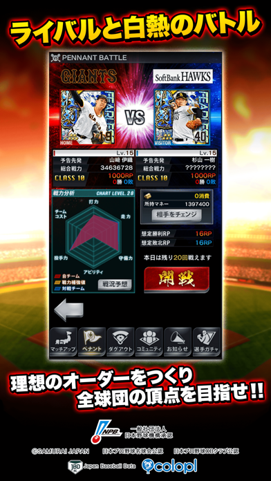 「ペナントレース」で他プレイヤーと対戦できます。全4期にわたり、全国のライバルたちとClass昇格をかけた熱い戦いを繰り広げることができます。チーム編成や戦略的な試合展開を楽しみながら、勝利を手に入れましょう。