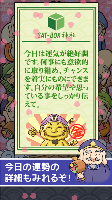 毎日の運勢を占える、お手軽なおみくじアプリ。七福神が描かれており、なんだかめでたい気分になれます。