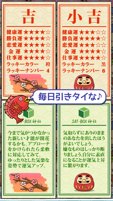 - 今日の運勢を占ってくれるおみくじアプリ。ドキドキの一日の始まり