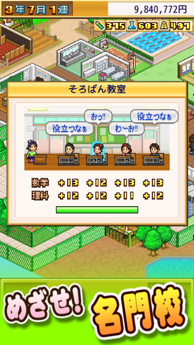 学校経営ゲームです。色々、努力すると入学希望者が増えたり、行事を開催したりとやる事が盛り沢山です。ドット絵な所も味がありイイです。生徒を無事卒業させ夢を叶えさせられるのか⁉︎自分の学生時代を思い出しますね。無料でやり込み要素が大です‼︎