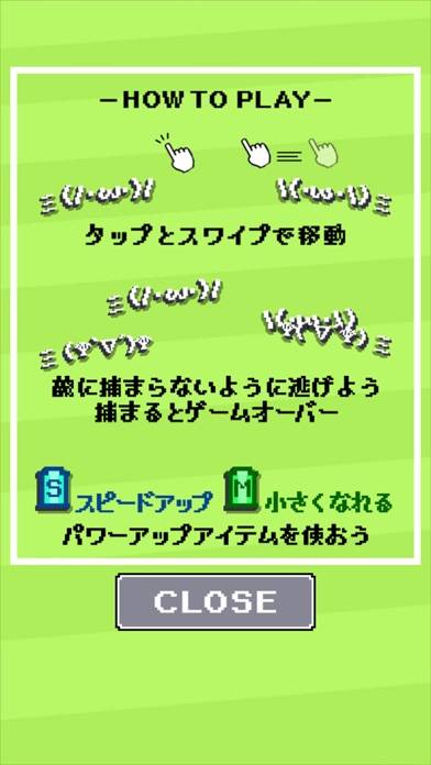 顔文字がキャラクターになった、カジュアルゲームです。鬼の「Ψ( `▽´)Ψ」が追いかけてくるので、行きたい方向にタップして逃げ回りましょう。キャラが横広いので、逃げるのは結構至難の業ですよ!