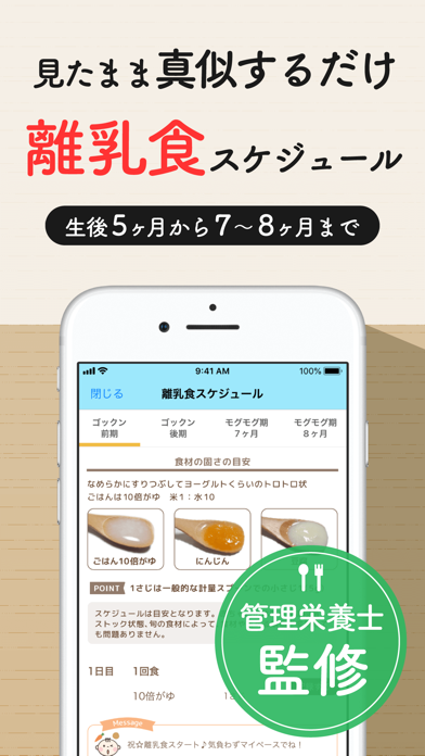 赤ちゃんの成長に合わせて、適切な離乳食を教えてくれるアプリ。管理栄養士が監修しており、食べられる食材はもちろん、与え方まで伝授してくれます。好き嫌いやアレルギーなども記入できるので、インストールして損はないアプリだといえるでしょう。