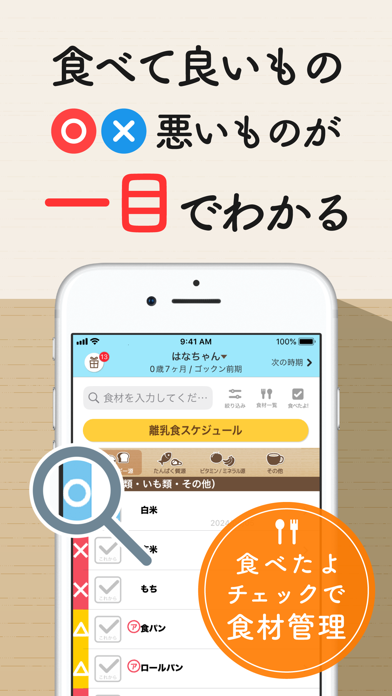 成長に合った食材リストでチェックでき離乳食事に大活躍でした!アレルギーが出やすい食材もわかりやすくしてくれてます!