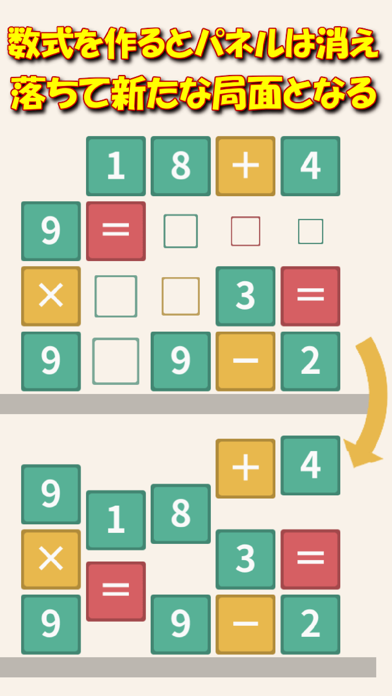 - 数式を作ってブロックを消していく、脳トレができるパズルゲーム