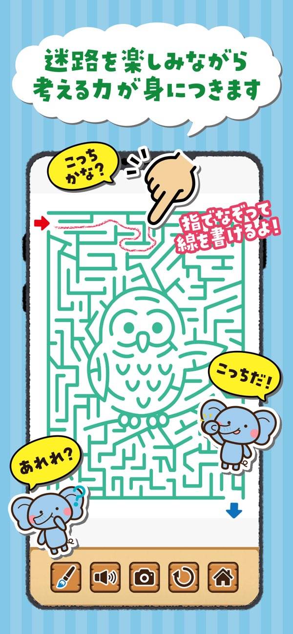子供が迷路で遊びながら、集中力や思考力を育てられるアプリ。70問以上の多彩な迷路が無料で楽しめます。道順をペンでなぞっていく形式で、迷路を直感的に解けるほか、進行状況もひと目で分かります。操作の細かなやり直しができないなどやや難はあるものの、シンプルなので子供もすぐに遊べるでしょう。