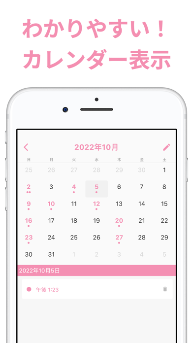 便秘に悩んでいる方におすすめの、便秘記録カレンダーです。やるべきことはたった1つ、お手洗い後にスッキリボタンを押すだけ。しばらく使ってからカレンダーを見てみると、お通じの間隔がどれくらいなのか確認できますよ。
