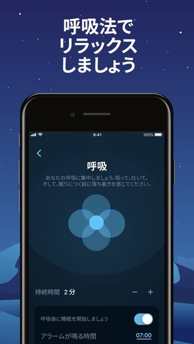 - 呼吸法や落ち着いたBGMを聞きながら、眠りにつきやすい体質へ