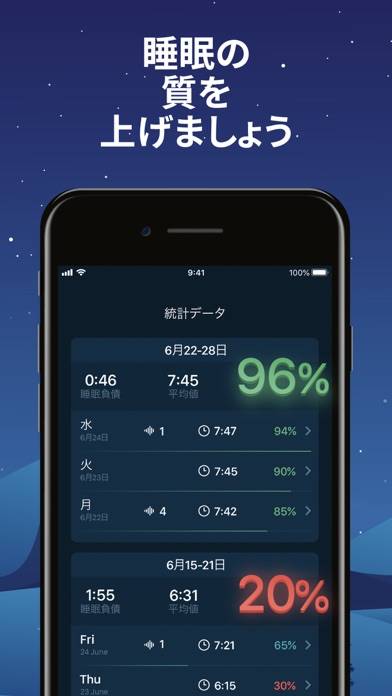 睡眠サイクルを分析し理想のタイミングで起こしてくれる目覚ましアプリ。睡眠中の音を記録・分析することができ、睡眠の質をグラフで確認できます。