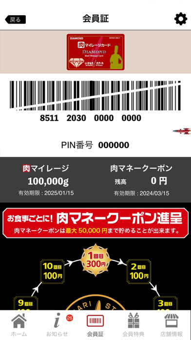 ステーキを食べた量によって肉マイレージを貯められます。肉マイレージを貯めると会員ランクが上がったり、クーポンをGETできたりします。会員ランクによって特典が増えるので、意識して貯めてみるのもいいでしょう。