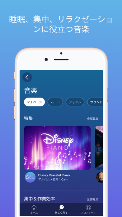 またマイページ、瞑想、睡眠、音楽にタブが分かれていて、コンテンツが探しやすいのもいいです。