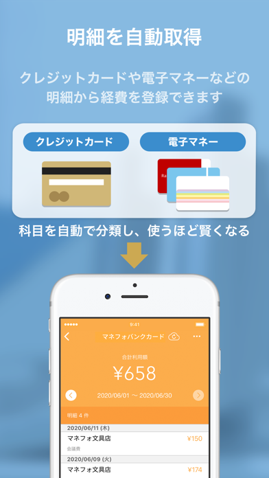 - クレジットや電子マネーの明細を自動取得。簡単に経費を管理できる