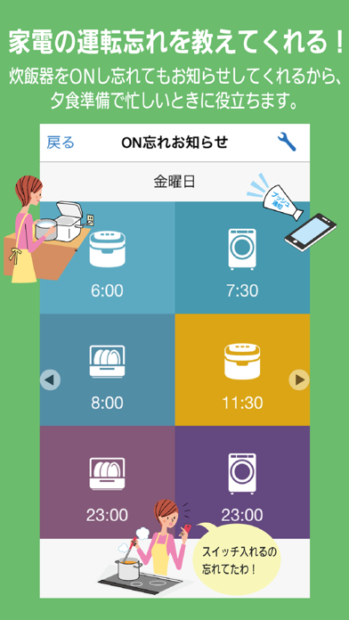 - お得な電気料金の時間も表示。洗濯の時間をずらすなどの節約術の参考に