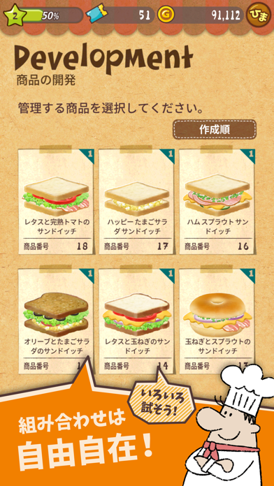 サンドイッチ屋さんを経営するゲームです