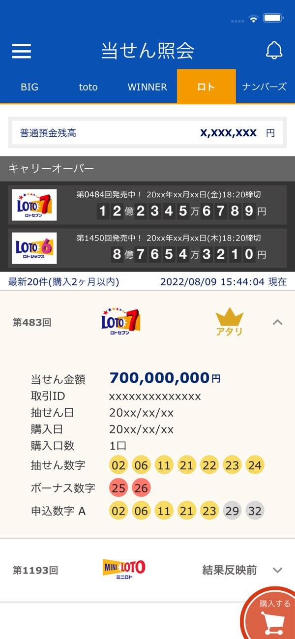 - 当せん照会を開くだけ。当せん確認と口座の残高照会がまとめてできる