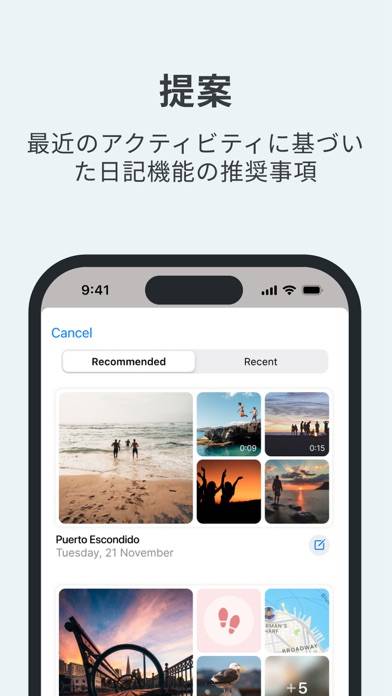 テキストの入力に加えて、写真や動画、音声なども自由に貼り付けられます。例えば忙しい日は声で話すだけ、うれしい出来事は写真付きで、心に残る景色は動画でと、そのときの気持ちや状況にふさわしい方法で残せるのが特長。