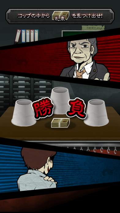 ▲クレーマーとは、コップの中に入った札束を当てるゲームで対決。負ければ店の評判がガタ落ち!