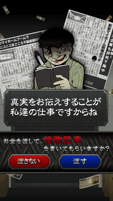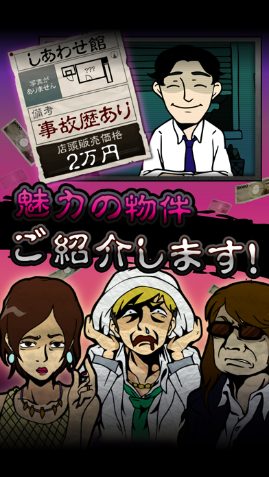 悪徳不動産店経営シュミレーションゲームです。ワケあり物件をお客に売るのですが、そのやり取り⁉︎駆け引き⁉︎がお客によって違うので面白いです。クレームにはミニゲームで対応します。サクサク出来て暇つぶしにはイイです。ゲームなのでいくらでも騙して売り付けましょう‼︎