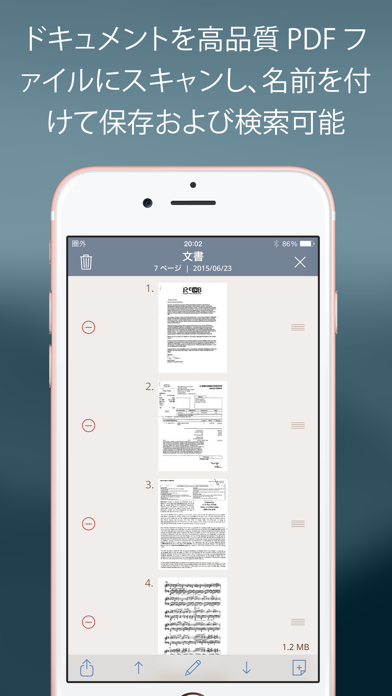 ただスキャンするだけのアプリもある中、本アプリは撮影データの名前を変更したり、画像サイズを調整したりといった編集機能もあります。1つ1つ細かく編集したいという方には嬉しい機能ですね。JPEGやPNGはもちろん、PDF形式にして保存することも可能。書類を電子化するにあたって、いいサポートをしてくれるアプリです。