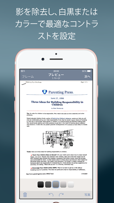 - 自動で紙の縁や傾きを検出し、きれいに電子化するスキャナアプリ