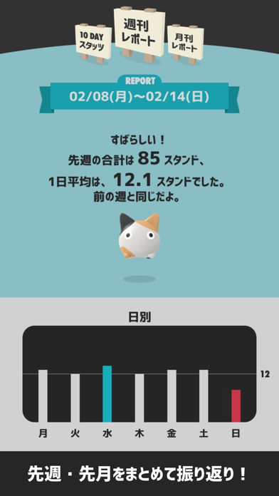 日中、どれだけ立ち上がって歩いたかカウントしてくれるアプリ。1時間に1分歩くだけでワンカウントなので、ウォーキングとかするの面倒だなあという人でも安心。