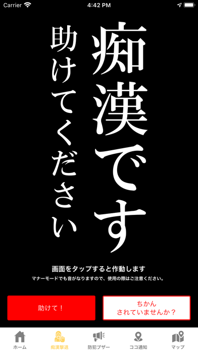 • 無料で使える防犯アプリ。爆音で周囲に助けを求められる