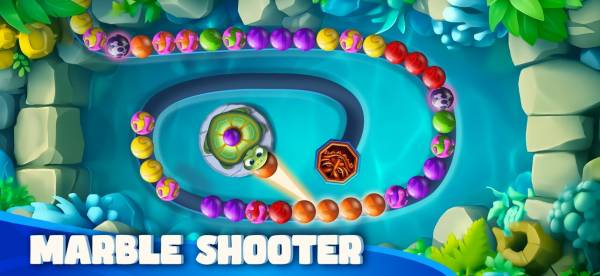 真ん中にいるカメから発射してカラーボールを消していくゲームです。カメが撃つボールの色はランダムで変化するため、考えて発射しましょう。カラーボールで盤面が詰まってしまうとゲームオーバーになります。