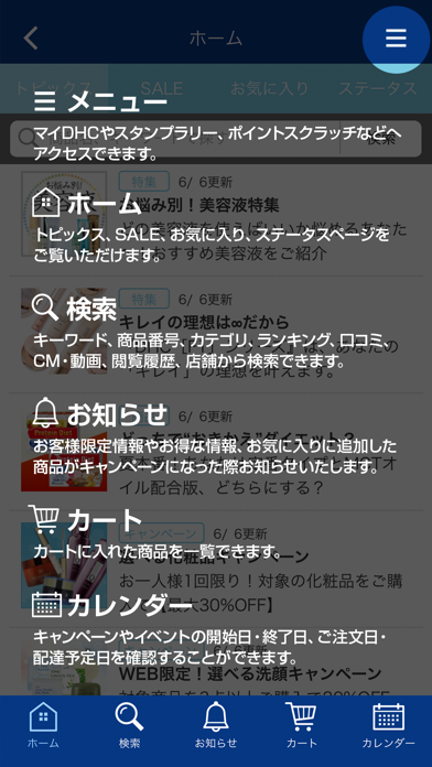 - DHCオンラインショップの商品をアプリ内から注文できる