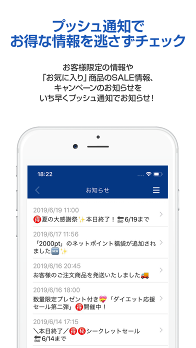 キャンペーン価格で商品を買ったり、クーポンを手に入れたりすることができます。普通に買うより20から30%安くなっているものが多く、中には70%オフの商品も。プッシュ通知機能もあり、新しい情報を逃さずキャッチできるでしょう。