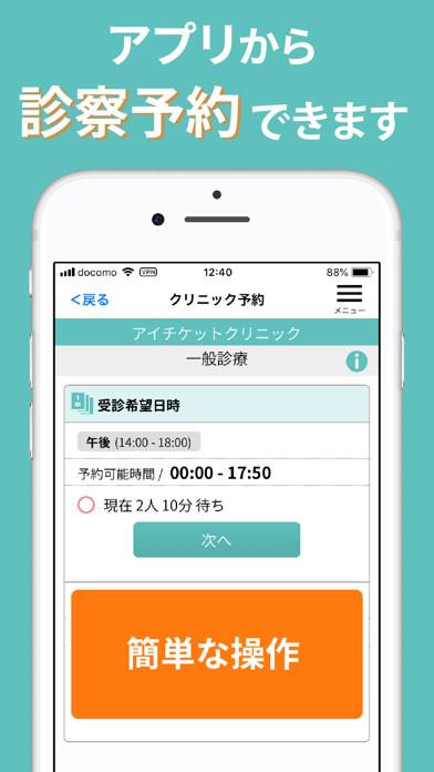 - 待ち時間を削減し、予約忘れを防ぐプッシュ通知機能付き