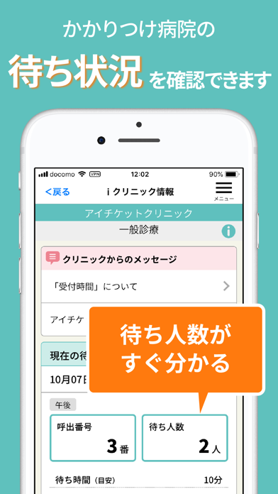 混雑状況を確認できてスムーズに診察可能
