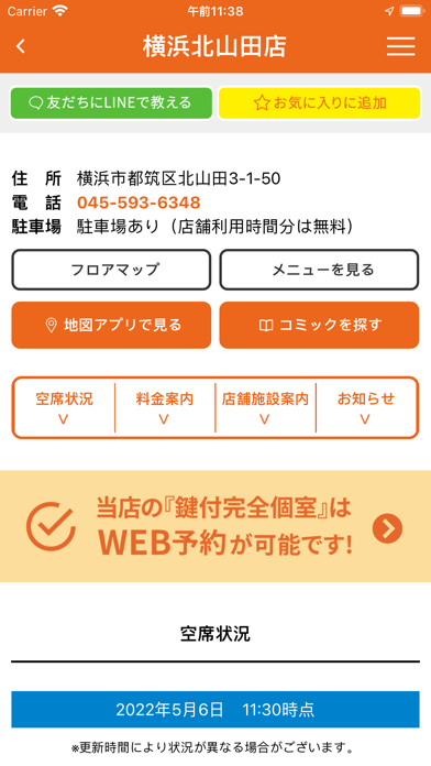 - 事前に空席状況をチェックできるから、待たずに利用可能!