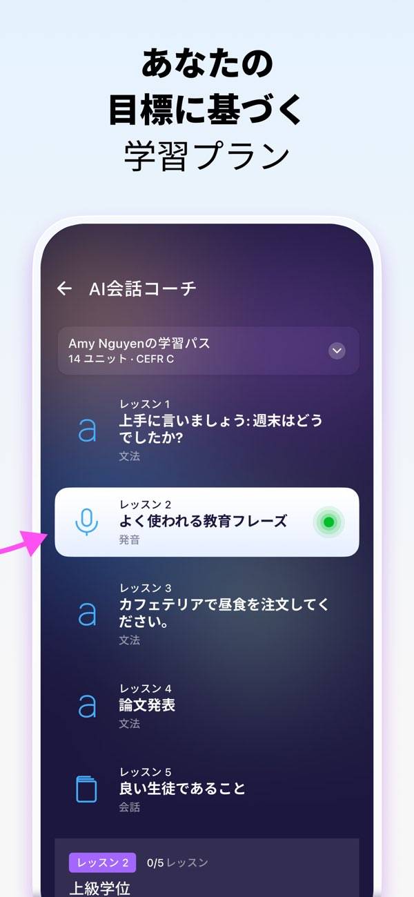 また、さまざまなシチュエーションに応じた単語やフレーズを学ぶことも可能。実際に発音しながら覚えていくので、効率よく身につけられますよ。
