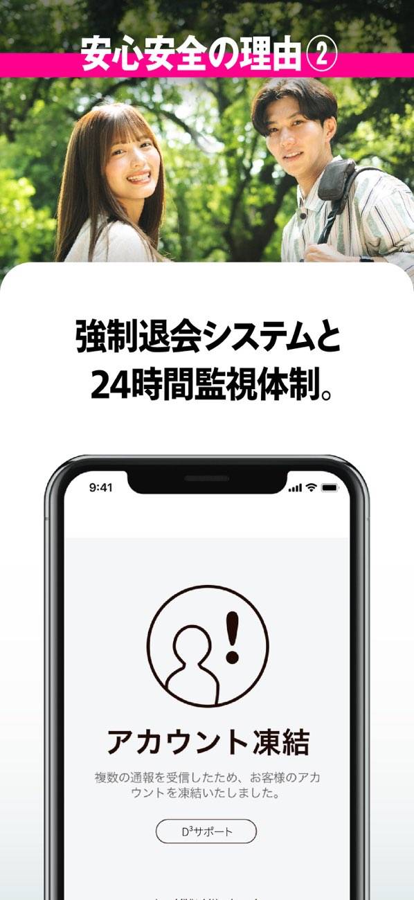 マッチング=デートなので、ほぼ確実に出会えます。他のアプリであれば、マッチングしても出会えない場合もありますが、本アプリであればそんなことはありません。6ヶ月以上のプランであれば、プラン期間の半分を無料延長してくれます。