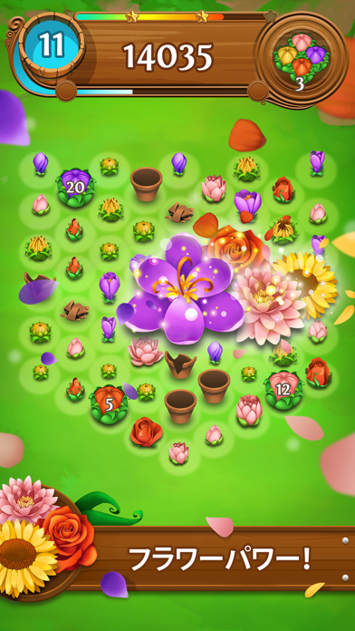 ▲つぼみを3つ以上繋げるだけの簡単ルール。一定数以上繋げるると、花が満開になります。
