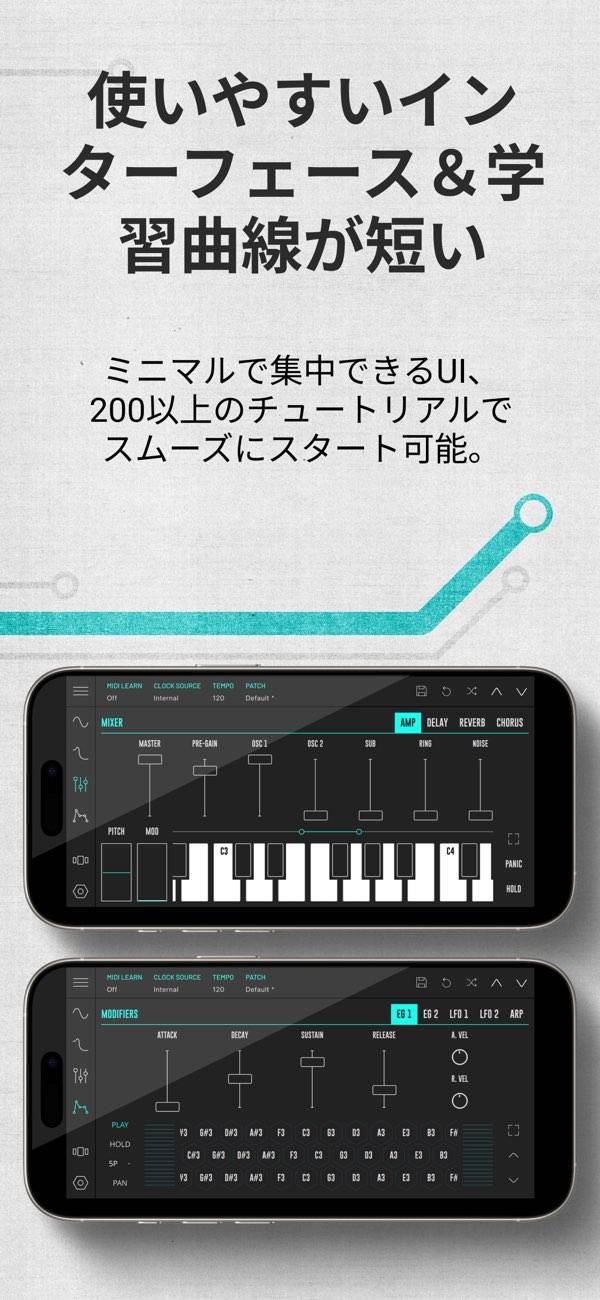 このアプリは、音作りの可能性を広げるポリフォニックシンセサイザーです。デバイス間でのパッチ同期機能や、ほかの音楽アプリとの連携が可能なAUv3互換性を備えています。豊富な機能を持つシンセサイザーで、自由な音作りができます。音楽制作が好きな方や、新しいサウンドを追求したい方におすすめです。