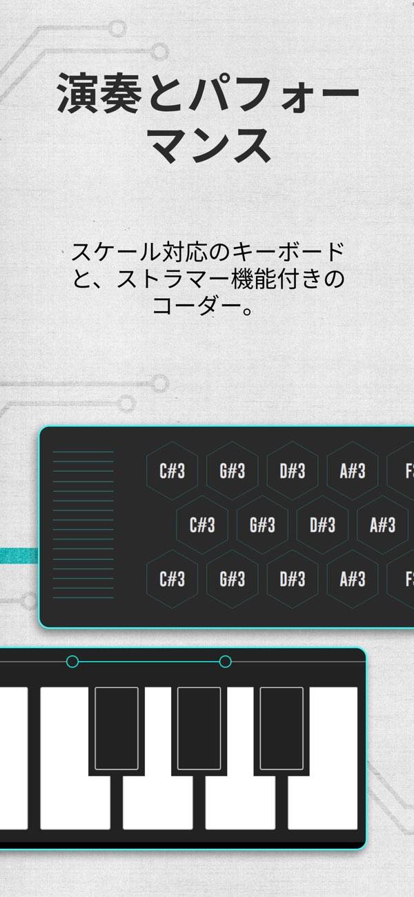 AUv3に対応しているため、Garage Bandなど他の音楽編集アプリと繋げて使用可能。この機能により、さまざまなアプリケーションとの連携が可能となり、音楽作りの幅が広がります。