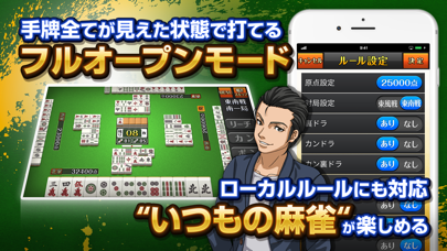 - 不要な演出を省き、純粋に対局を楽しめる麻雀アプリ。初心者も上級者も