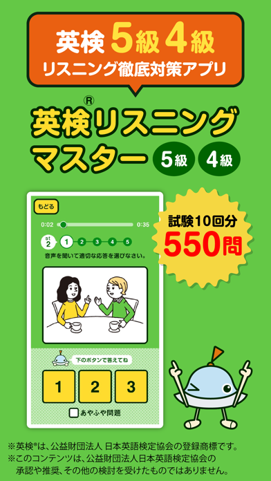 - 550問のリスニング問題で英検5級4級対策が可能な無料学習アプリ