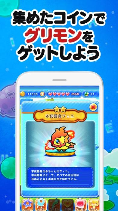 ガチャを引くとグリモンが手に入り、ステージクリアに応じて進化します。個性豊かな姿をしたグリモンを集めて、図鑑コンプリートを目指すコレクション要素が楽しめるでしょう。