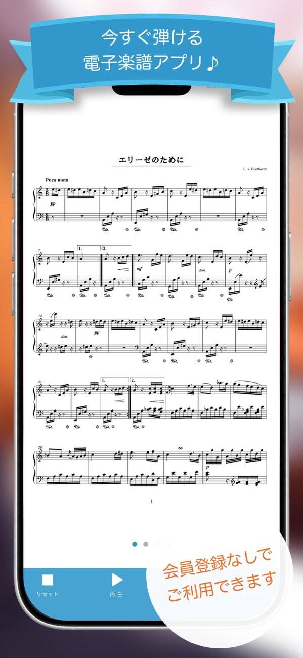 ピアノ演奏が好きなら、このアプリがあなたの新しいパートナーに。気に入った曲の楽譜を1曲単位で手に入れ、ダウンロードが可能です。楽譜に合わせて音楽が流れ、自分のペースで練習。楽譜に自分のメモやマーキングを書き込むことも可能です。ピアノリサイタルから幼稚園の発表会まで、あらゆる場面で活用できます。
