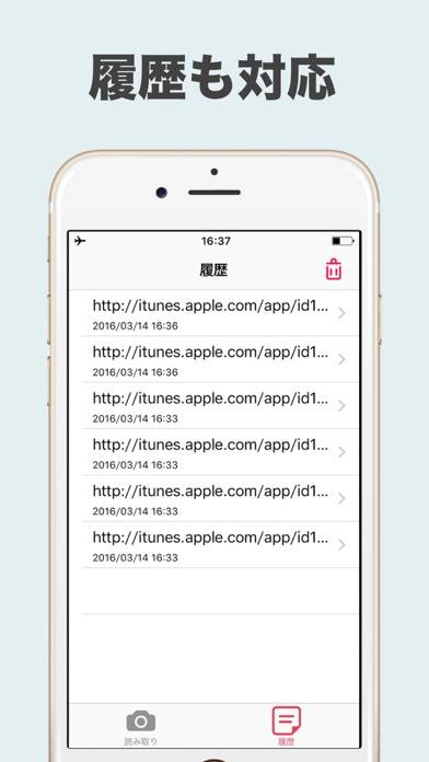 画面下部の履歴をタップすれば、読み取ったQRコードのURLが一覧表示されます。過去に読み取ったものを、再度読み取る手間が省けるので便利。URLの上で左にスワイプすれば、個別に削除することができます。