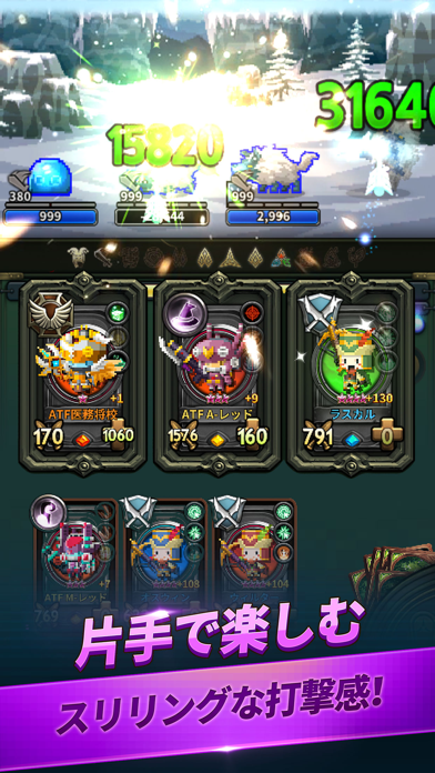 ランダムな6枚のカードから3枚のカードを上手く組合せて、敵にダメージを与えて攻略するゲームです。選出した3枚のカードが同じ属性、職業だと与えるダメージが何倍にもアップ!
