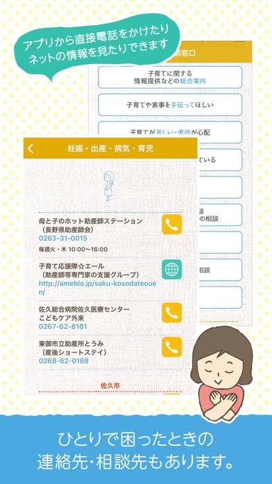 発熱や嘔吐などの症状別の対応策がわかります。症状から救急車を呼ぶか、診察の予約で済むかを判断が可能。緊急時にも冷静な対応が可能になります。佐久医師会監修のもと、信頼性の高い内容が提供されています。